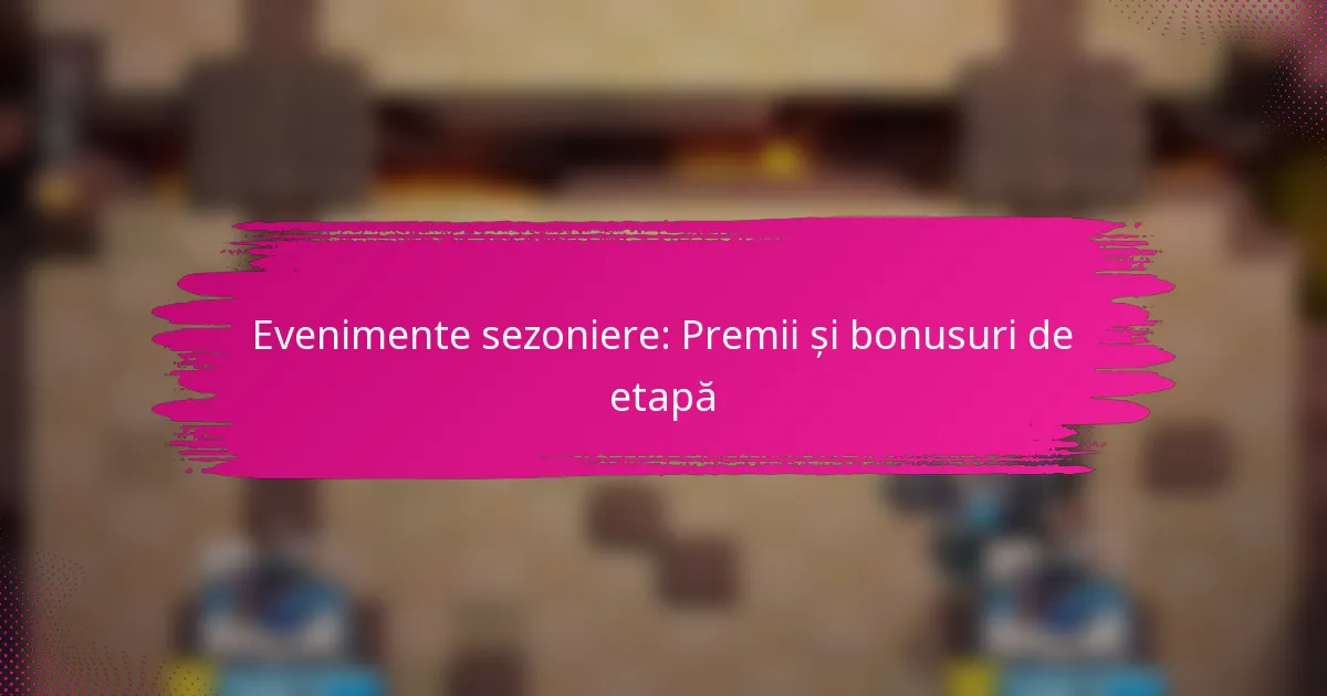 Premiile pentru etapele evenimentelor sezoniere sunt recompense speciale pentru jucătorii care ating obiective specifice în timpul evenimentelor cu durată limitată din jocuri sau aplicații. Aceste premii încurajează participarea și îmbunătățesc experiența de joc prin recompensarea implicării și realizărilor pe parcursul perioadei evenimentului.